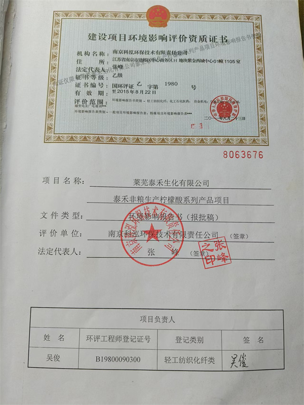 泰禾生化致力于资源节约和发展低碳经济,以科技创新促进环境保护与循环经济发展,走可持续发展道路,在行业内率先实施lca 和 epd认证。
